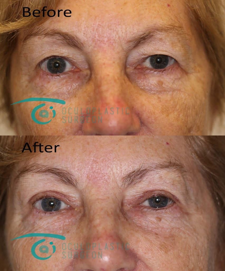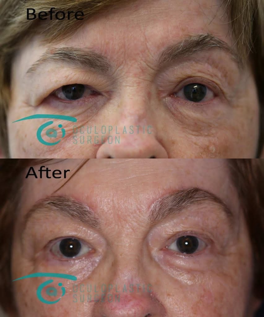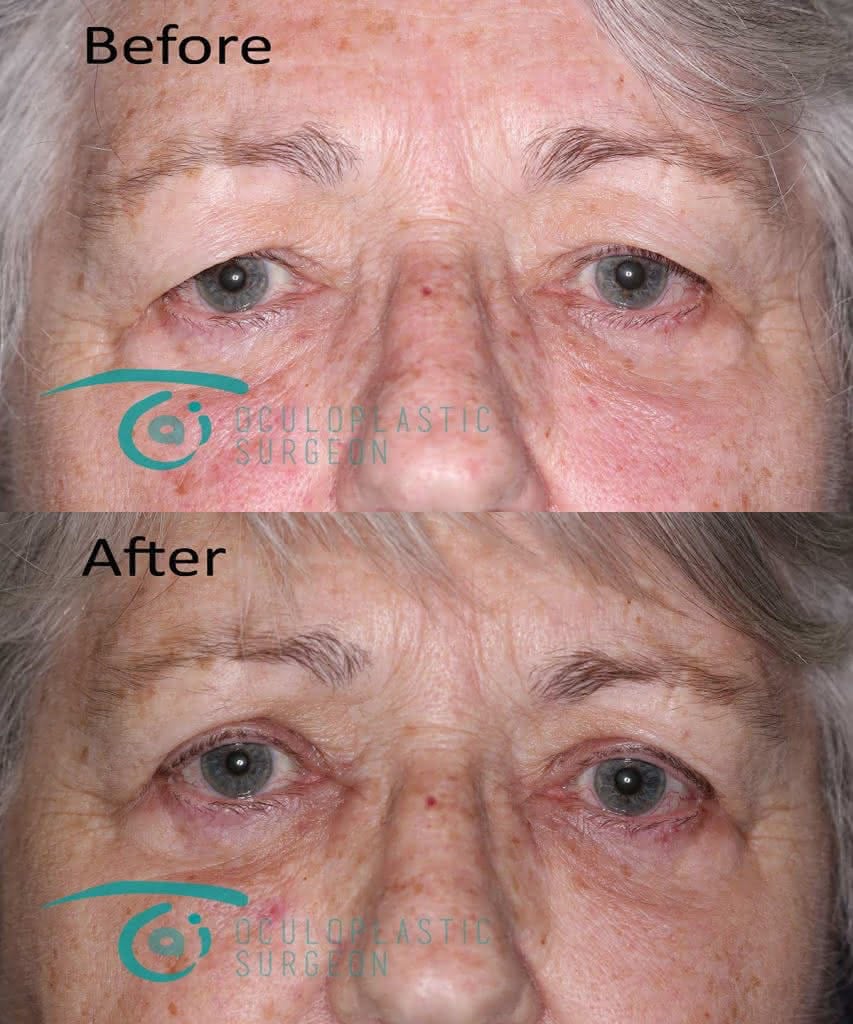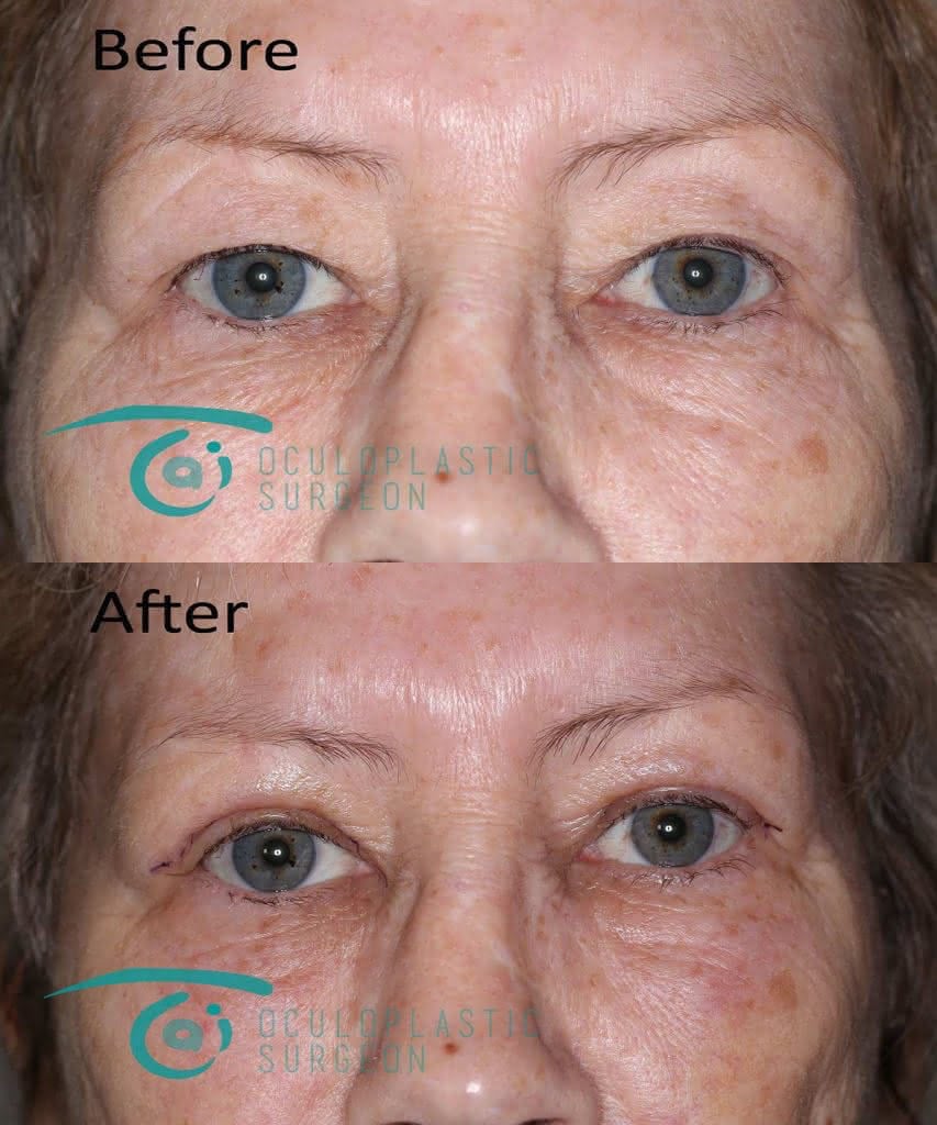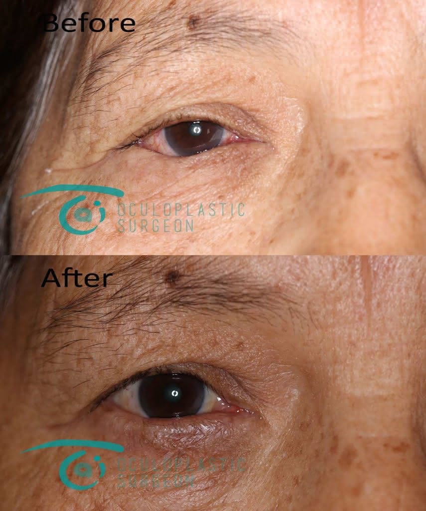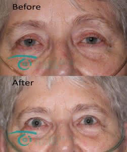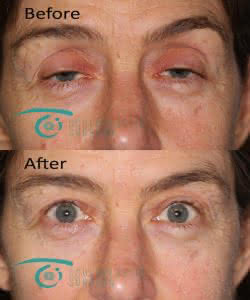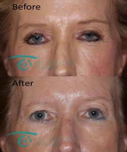 Ptosis or blepharoptosis, is a low position of the eyelid margin. Surgery lifts up the eyelids to the normal position and restores symmetry. It is frequently combined with upper lid skin reduction in older patients.