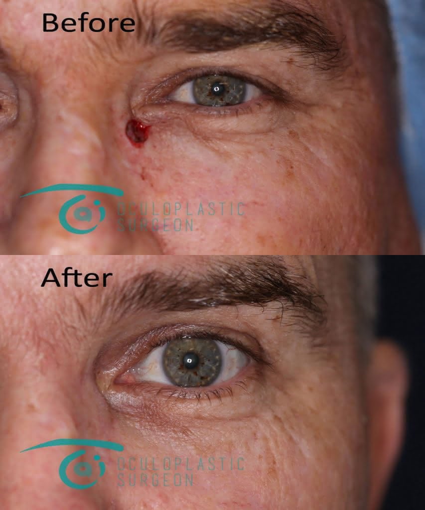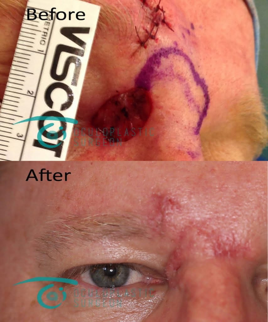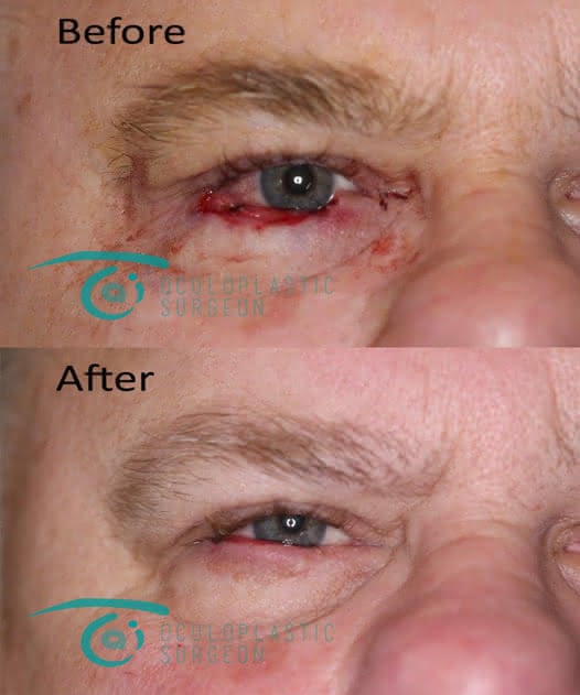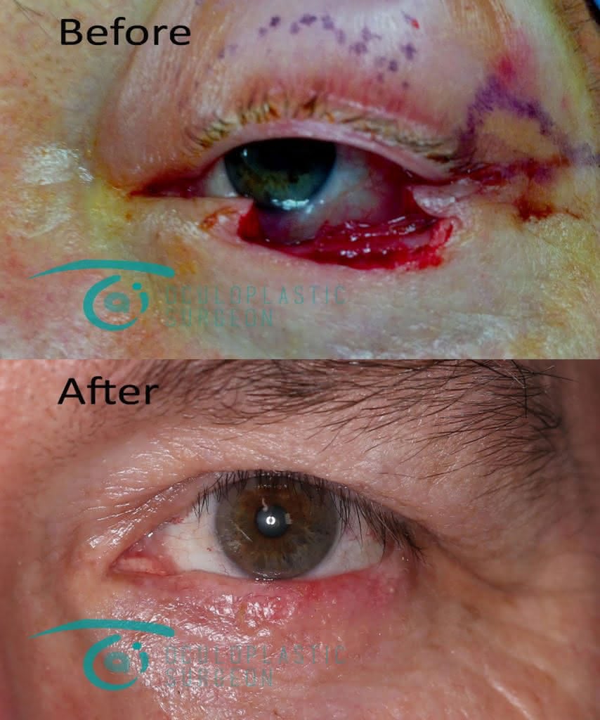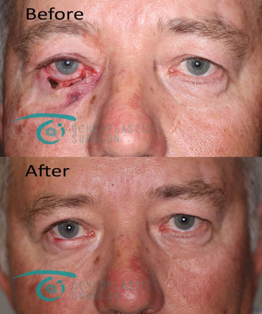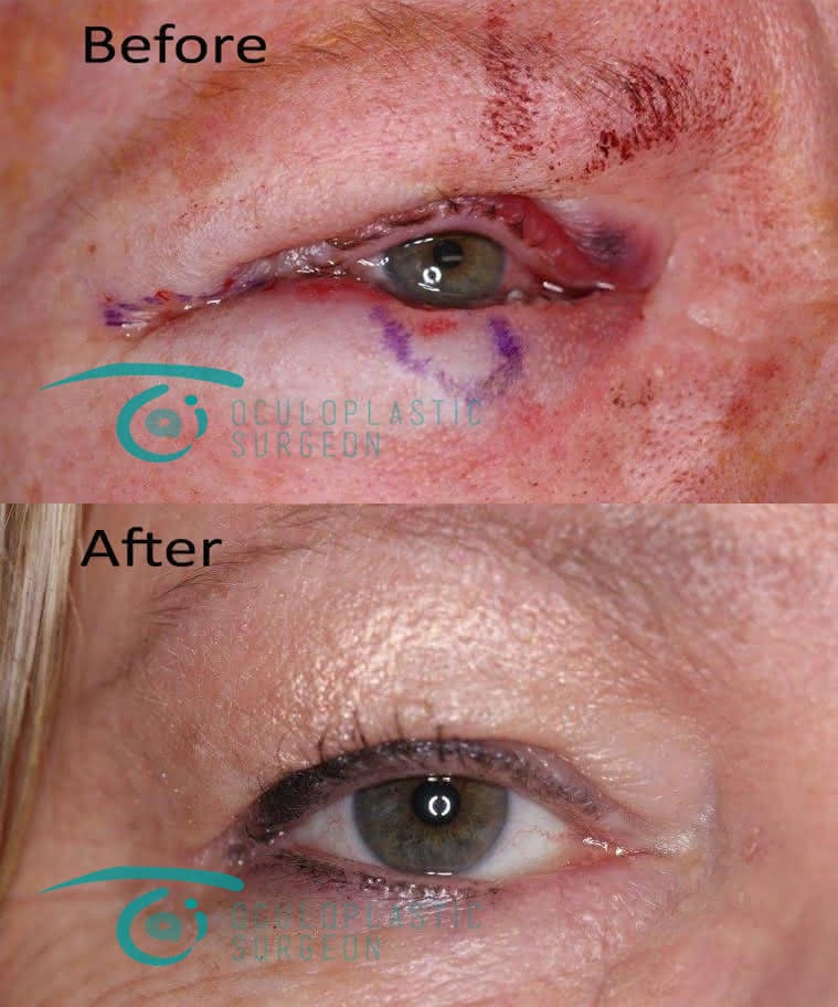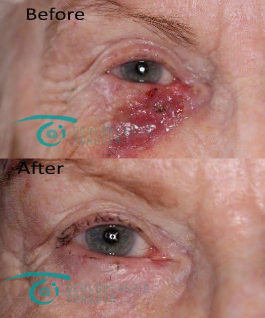 Tumour reconstructive surgery follows excision of skin cancers. The function of the eyelid needs to be restored and a cosmetically pleasing outcome is essential. Eyelid reconstruction requires unique skills for the desired results whether it be small defects or reconstruction of entire eyelids.