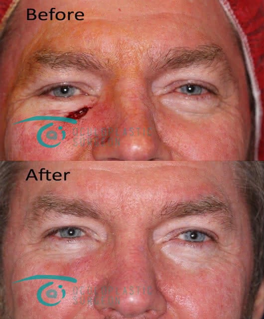 Trauma to the eyelid and brow is always unplanned. Urgent treatment minimises the risk of infection. Expert treatment enhances the chances of a cosmetically acceptable long-term outcome. Tear duct injury is common and best assessed and repaired immediately by a lacrimal surgeon. Dr Smith can provide same day surgery in Emergency cases.