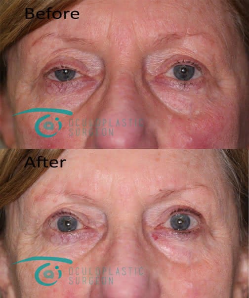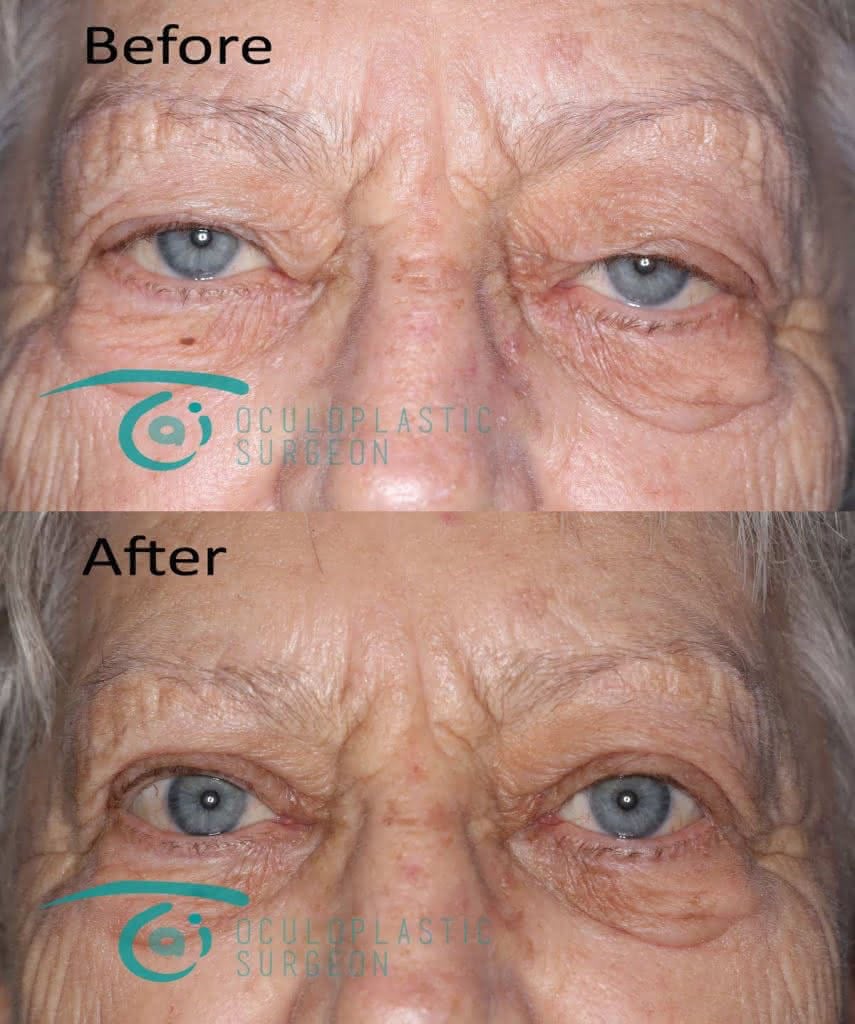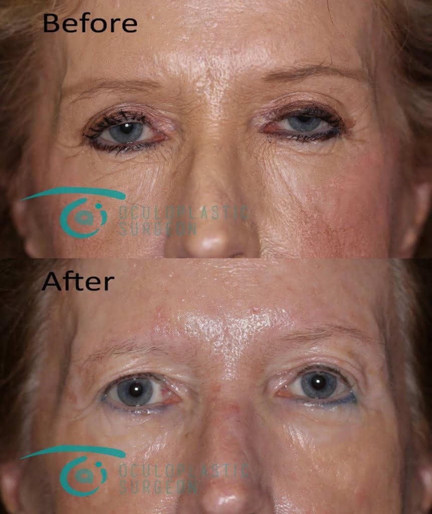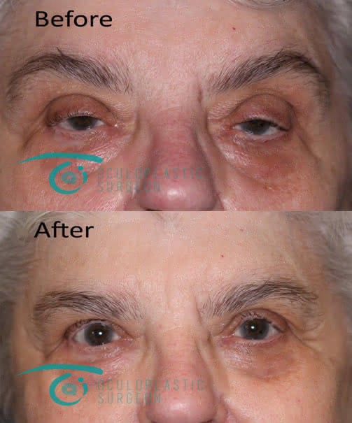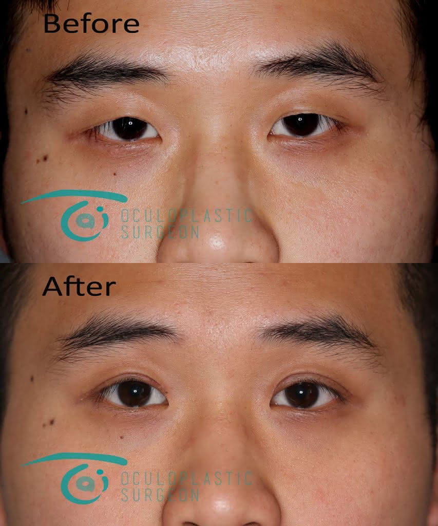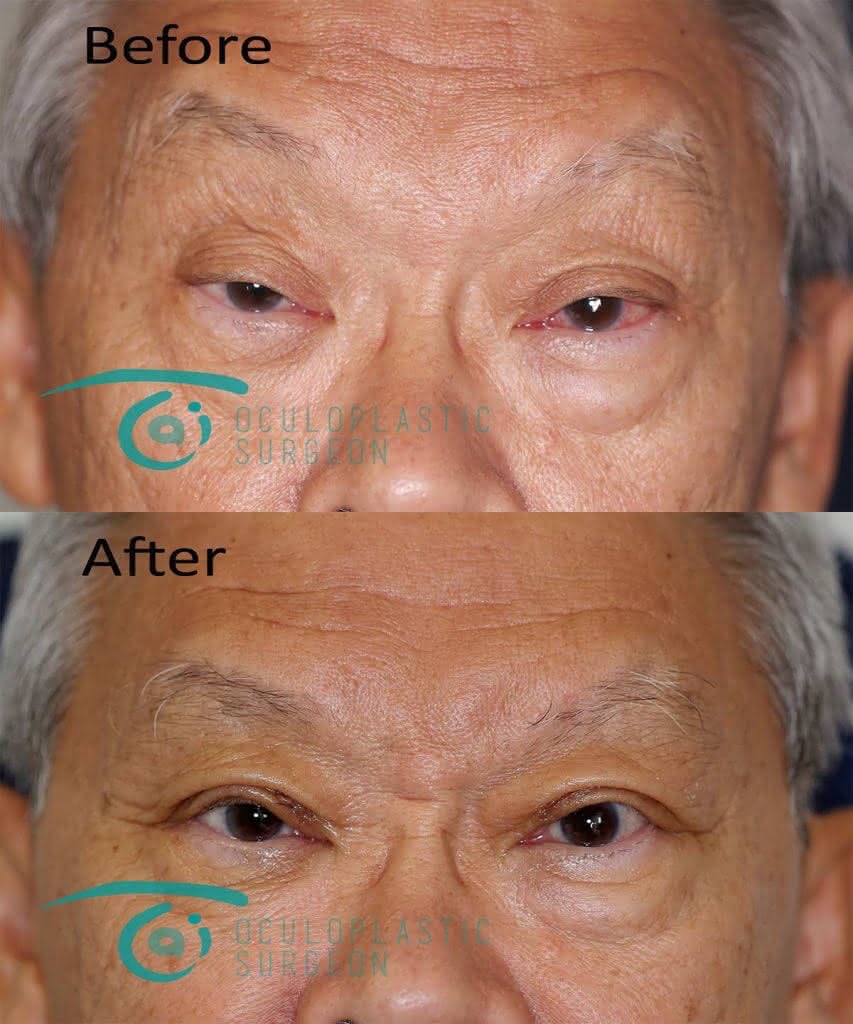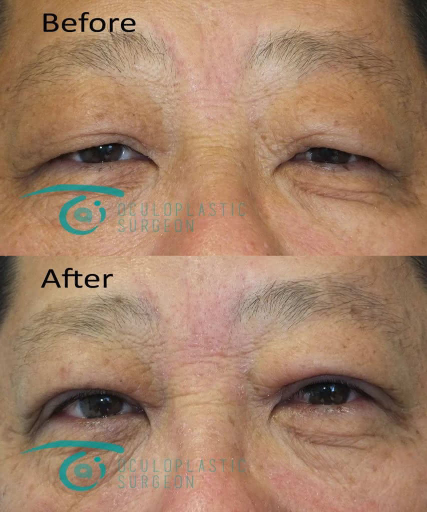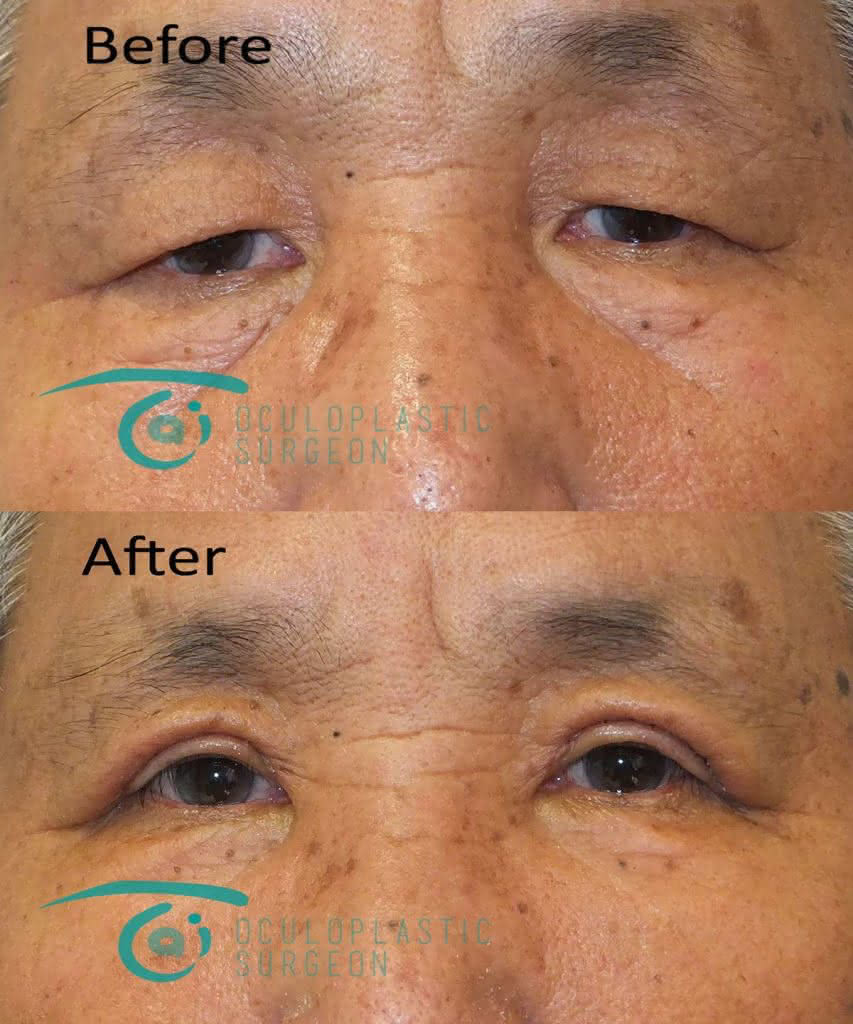 Ptosis or blepharoptosis, is a low position of the eyelid margin. Surgery lifts up the eyelids to the normal position and restores symmetry. It is frequently combined with upper lid skin reduction in older patients.